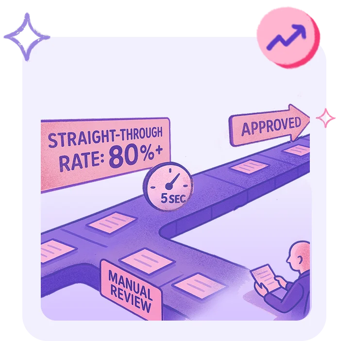 5 seconds with >80% straight-through processing.